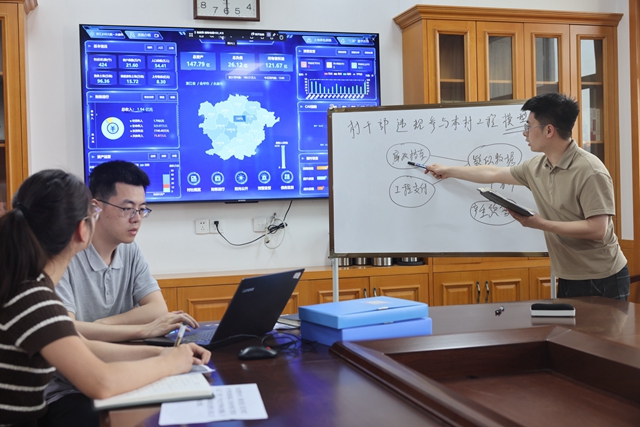 浙江省永康市纪委监委强化“以智管资”,持续探索农村“三资”管理数字化监督新路径,切实提升基层治理效能。图为该市纪委监委干部就农村“三资”场景监督模型构建进行研判。施静祎 摄