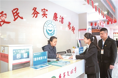 福建省柘荣县纪委监委通过常态化开展察访、点题整治、强化大数据监督等方式,坚决清除破坏营商环境的“四风”问题,以作风持续向好引领营商环境持续向优。图为该县纪检监察干部在县政务服务中心了解相关情况。 袁镔 摄