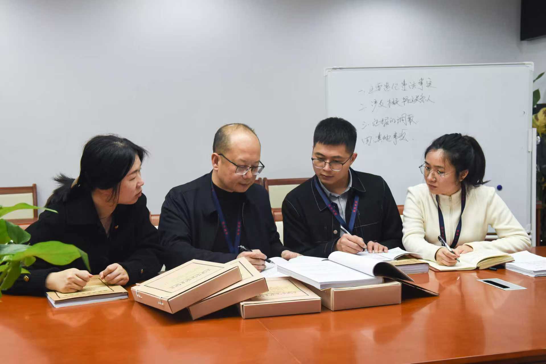 图为广西壮族自治区桂林市纪委监委工作人员围绕案情进行研讨。朱东华 摄