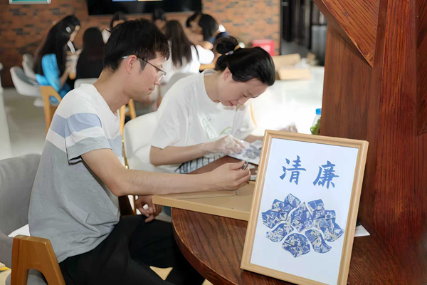 江苏省张家港市纪委监委推动全市各单位结合实际开设“好家风 好人生”廉洁课堂,引导干部及家属知廉守廉,共筑拒腐防变的家庭防线。图为近日,该市年轻干部及家属在廉洁课堂上共同制作清廉陶瓷画。 陈漪琳 摄