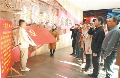 广西壮族自治区柳城县通过开展多种形式学习教育,推动党员、干部铸牢对党绝对忠诚政治品格。图为该县党员干部到廉政教育基地开展主题党日活动,重温入党誓词。陈婕 摄