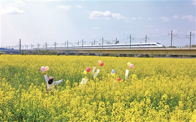 从守护百姓身边的蓝天、碧水、净土,到保护山川、草原、河流以及生长其间的万物生灵,再到回应时代之变、推动绿色低碳转型发展……生态环境法典及时把生态文明建设的宝贵经验、成功做法上升为法律制度,标志着我国进入了以生态环境法典推动和保障生态文明建设的时代。图为近日,一列高铁列车穿行在油菜花竞相绽放的四川省泸州市龙马潭区慈竹村。 新华社发(牟科 摄)