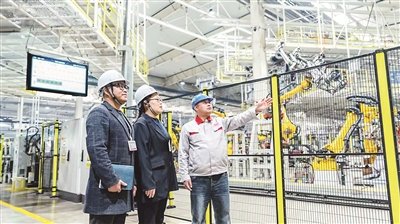 安徽省芜湖市纪委监委紧紧围绕贯彻新发展理念、发展新质生产力等党中央重大决策部署,强化监督执纪,护航经济社会高质量发展。图为该市纪检监察干部在一家企业的智造工厂车间走访,了解相关政策落实情况。 杜广明 摄