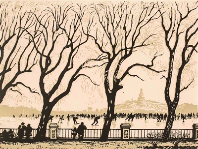 画家古元创作的版画《北海之冬》。 资料图片