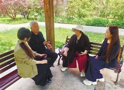 北辰区青(广)源街道荣康园社区纪检监察工作联络站工作人员收集廉情信息和居民意见。