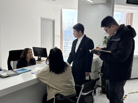 红桥区纪委监委工作人员深入区政务服务大厅了解对企业务办理流程和服务情况,助力提升商务服务发展质效。(资料图片)