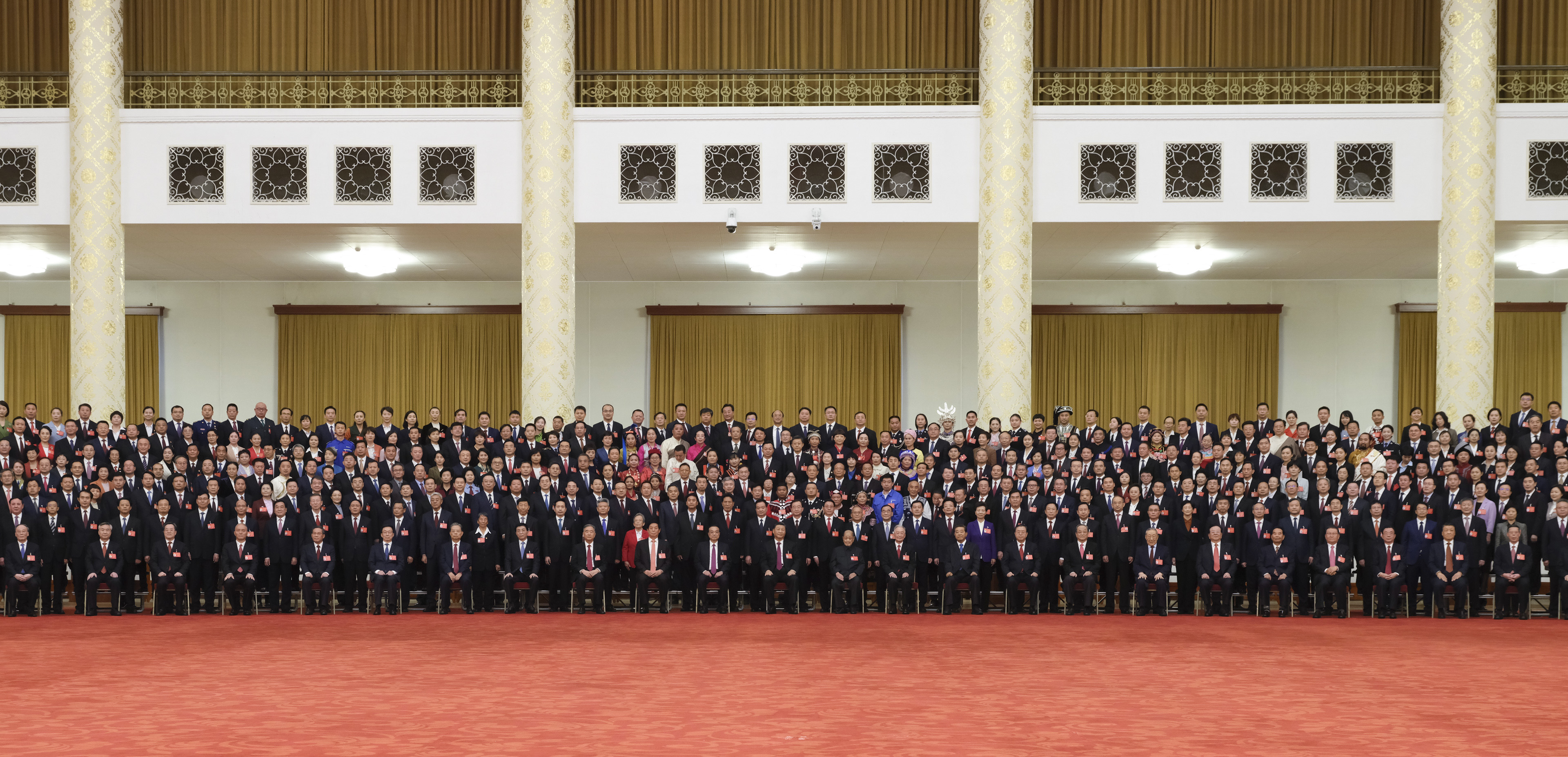 10月23日下午,中共中央总书记、国家主席、中央军委主席习近平等领导同志在北京人民大会堂亲切会见出席党的二十大代表、特邀代表和列席人员,并同大家合影留念。 新华社记者 丁林 摄