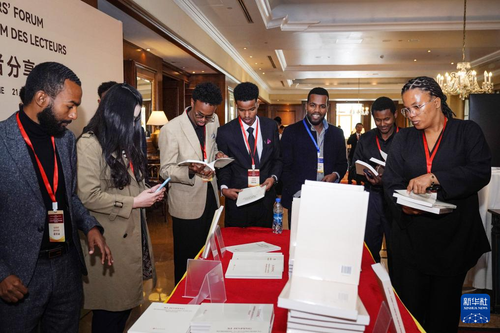 8月21日,嘉宾在埃塞俄比亚首都亚的斯亚贝巴举行的《习近平关于尊重和保障人权论述摘编》读者分享会期间翻阅《习近平关于尊重和保障人权论述摘编》。新华社记者 韩旭 摄