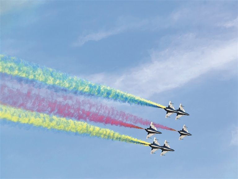 9月19日至23日,第十一届空军航空开放活动和长春航空展在吉林长春举行。图为9月19日长春航空展首日,飞行表演队在活动现场带来精彩表演。 本报记者 李灵娜 摄