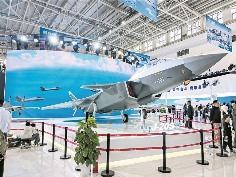 图为隐身战机歼-20S的模型“现身”空军主题展区。 本报记者 李云舒 摄