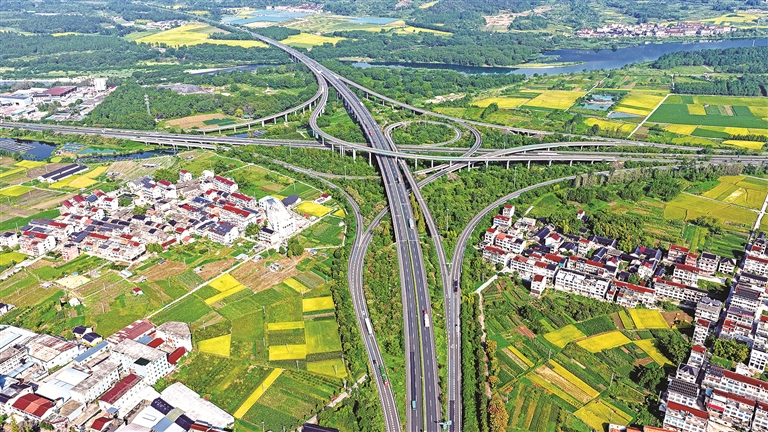 浙江省台州市持续加大交通基础设施建设,不断优化城乡交通路网布局,四通八达的公路有力推动乡村旅游、物流运输发展和农产品市场拓展,助力乡村振兴。图为仙居县白塔镇四通八达的高速公路,穿越山川、田园,连通产业基地与村庄民居,构成一幅美丽乡村共富新画卷。