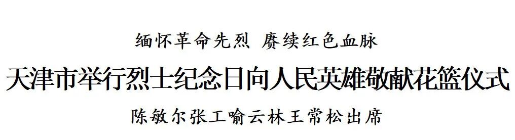 9月30日,我市在市烈士陵园举行烈士纪念日向人民英雄敬献花篮仪式,缅怀先烈,致敬英雄,弘扬革命精神,赓续红色血脉,进一步汇聚奋力谱写中国式现代化天津篇章的强大力量。