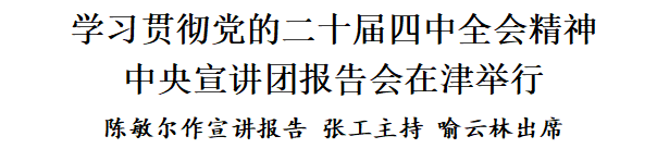 按照党中央统一部署,学习贯彻党的二十届四中全会精神中央宣讲团报告会10月31日在津举行。中央宣讲团成员、市委书记陈敏尔作宣讲报告。