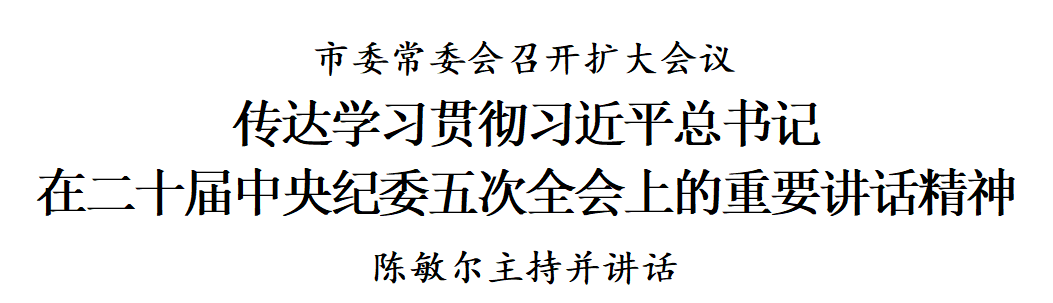 1月15日,市委常委会召开扩大会议,传达学习贯彻习近平总书记在二十届中央纪委五次全会上的重要讲话精神,学习贯彻关于2025年中央政治局贯彻执行中央八项规定情况的报告和关于2025年整治形式主义为基层减负工作情况的报告,听取市纪委监委2025年工作情况汇报,审议十二届市纪委五次全会工作报告、关于2025年市委贯彻落实中央八项规定精神工作情况的报告、关于2025年整治形式主义为基层减负工作情况的报告,研究部署有关工作。
