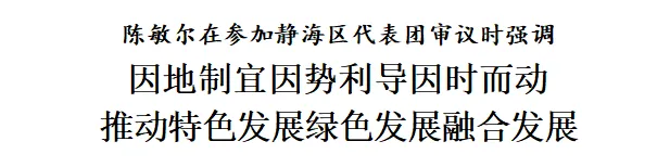 陈敏尔肯定静海区去年经济社会发展取得的成绩。他强调,新征程要有新气象,新的一年要有新作为。要深学深用习近平总书记视察天津重要讲话精神和对天津工作一系列重要指示要求,以推进京津冀协同发展为战略牵引,以“四个善作善成”重要要求为着力点,坚持目标导向、问题导向、结果导向,切实增强抓发展的紧迫感、责任感,保持战略定力,立足资源禀赋,在盘活存量中做优增量,努力实现“十五五”良好开局。坚持特色发展,抓住深化京津冀区域一体化和京津同城化发展机遇,用好特色资源,做足“土特产”文章,做优现代都市型农业,强化大数据、智能化赋能,推动材料、轻工、装备制造等传统产业转型升级,大力发展现代中医药等大健康产业,促进文旅体深度融合,加快形成新质生产力。坚持绿色发展,抓好中央生态环境保护督察指出的问题整改落实,实施好大气污染治理攻坚行动,加强大运河、团泊洼湿地等生态保护修复,建好用好中国—上海合作组织绿色产业合作平台,加快发展循环经济,促进产业生态化和生态产业化,推动经济社会发展全面绿色转型。坚持融合发展,发挥区位和交通优势,主动融入“津城”、“滨城”发展,把推进新型城镇化和乡村全面振兴有机结合起来,加强城乡治理一体化,促进人居环境和自然生态融合,建设宜居宜业和美乡村。