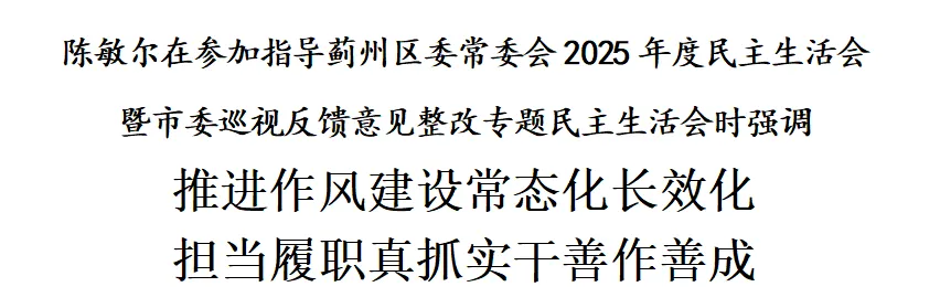 陈敏尔指出,蓟州区具有区位、生态、乡村、人文等优势,在全市发展大局中地位独特而重要。区委常委会班子要以这次民主生活会为契机,进一步加强自身建设,团结带领全区党员干部群众拼搏进取、攻坚克难,推动蓟州各项事业发展迈上新台阶。在加强党的政治建设上担当履职,坚持不懈用习近平新时代中国特色社会主义思想凝心铸魂,在真学真懂真信真用上下功夫,增强政治判断力、政治领悟力、政治执行力,吃透上情、把握实情、体察民情,更加坚决有力地贯彻落实党中央重大决策部署。在推动高质量发展上担当履职,完整准确全面贯彻新发展理念,坚持因地制宜、因势利导,抓住京津冀协同发展机遇,积极融入现代化首都都市圈建设,引进更多优质资源、企业、项目,做好“土特产”文章,发展壮大现代都市型农业,强化农文旅、文旅体深度融合,着力保障和改善民生,在推动城乡融合发展上创造更多新鲜经验。在保护生态环境上担当履职,抓紧抓实中央生态环境保护督察指出的问题整改,持续推进大气、水、土壤污染综合治理,加强生态保护修复,拓宽生态产品价值实现路径,促进产业生态化、生态产业化,推动经济社会发展全面绿色转型。在统筹发展和安全上担当履职,坚决捍卫国家政治安全,有效防范和化解经济金融风险,扎实抓好地质灾害、森林防火、建筑施工、旅游景区等风险隐患排查整治,严格落实安全生产措施,强化社会面治安防控,加强韧性安全城区建设,筑牢首都政治、安全“护城河”。在纵深推进全面从严治党上担当履职,树立和践行正确政绩观,严格落实中央八项规定及其实施细则精神,怀德自重、洁身自好,严于律己、严负其责、严管所辖,抓好班子、带好队伍,运用反面典型案例开展警示教育,加大风腐同查同治力度,坚决整治群众身边不正之风和腐败问题,持续推动政治生态出清向好。