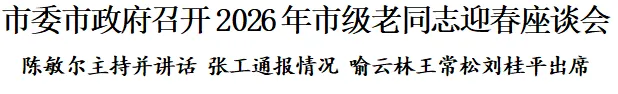 2月10日,市委、市政府召开2026年市级老同志迎春座谈会,向老同志通报2025年全市经济社会发展情况和今年工作打算,听取老同志意见建议,与大家共迎新春佳节,共话美好未来。