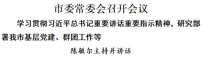 会议听取市总工会、团市委、市妇联工作汇报,强调要深入贯彻习近平总书记关于群团工作的重要论述,发挥各自优势,认真履职尽责,推动我市群团工作取得新成效。把党的政治建设摆在首位,坚持不懈用习近平新时代中国特色社会主义思想凝心铸魂,始终同以习近平同志为核心的党中央保持高度一致。紧扣中心大局担当尽责,切实发挥工人阶级主力军、青年生力军、妇女半边天作用,更好联系服务群众、维护群众合法权益,更好促进经济社会发展。持续加强自身建设,保持和增强政治性、先进性、群众性,不断增强群团组织引领力、组织力、服务力。各级党委要高度重视群团工作,为群团组织开展工作创造有利条件。