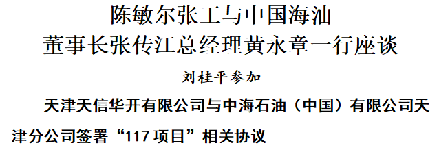 座谈后,天津天信华开有限公司与中海石油(中国)有限公司天津分公司签署“117项目”主塔楼部分楼层买卖协议。